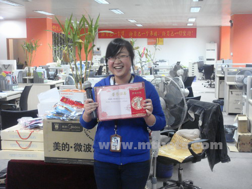 快樂天使張天英、員工發展中心戴小莉等人獲得10月份公司模范獎。