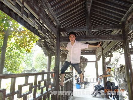 傳說中的四星級酒店“印象熟溪”門口來張集體照,彭清和女友很恩愛,大寶還是那么搞怪