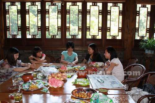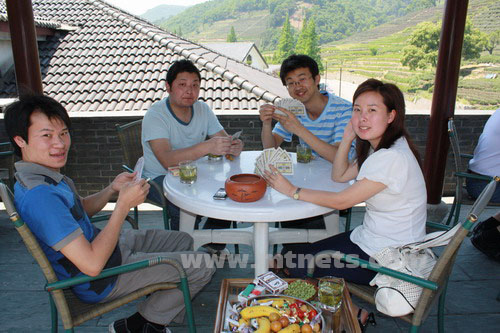 坐在大大的樓臺上一邊打牌一邊欣賞風景